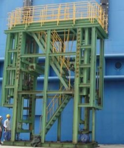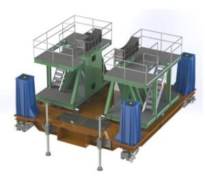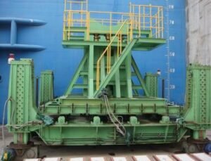 This installation platform is designed for installing ship stern rudders, propellers, and some types of stern shafts. It utilizes hydraulic power for precise vertical and horizontal movements to position components accurately. Consists of frame, hydraulic system, and locomotion devices.