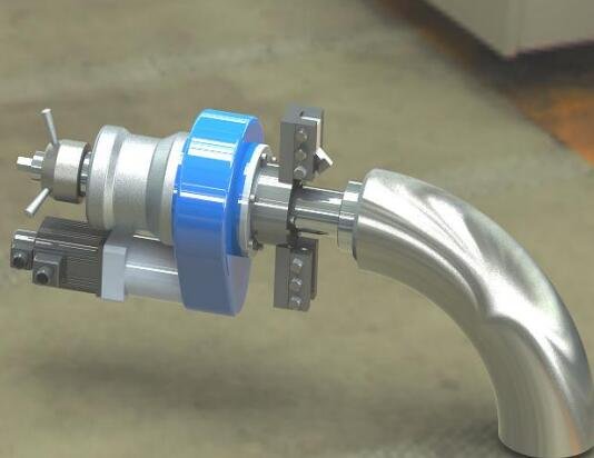 Это оборудование используется для снятия фасок с нелинейных изгибов труб без прямых участков. Оно зажимает гнутые трубы различных размеров с помощью приспособлений и обрабатывает сварочные скосы в осевом направлении. Угол скоса определяется углом наклона инструмента. Поддерживает диаметры от Φ25 до 325 мм, приводится в действие пневматикой, гидравликой или двигателем.